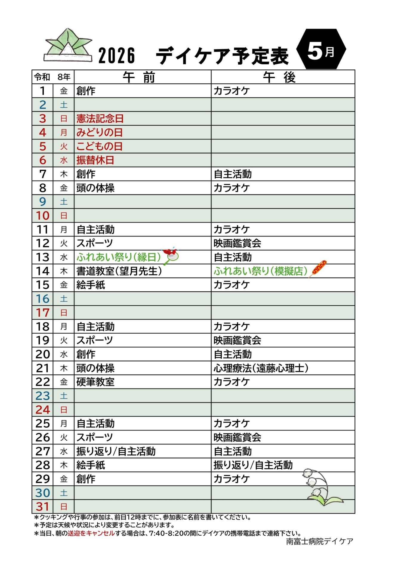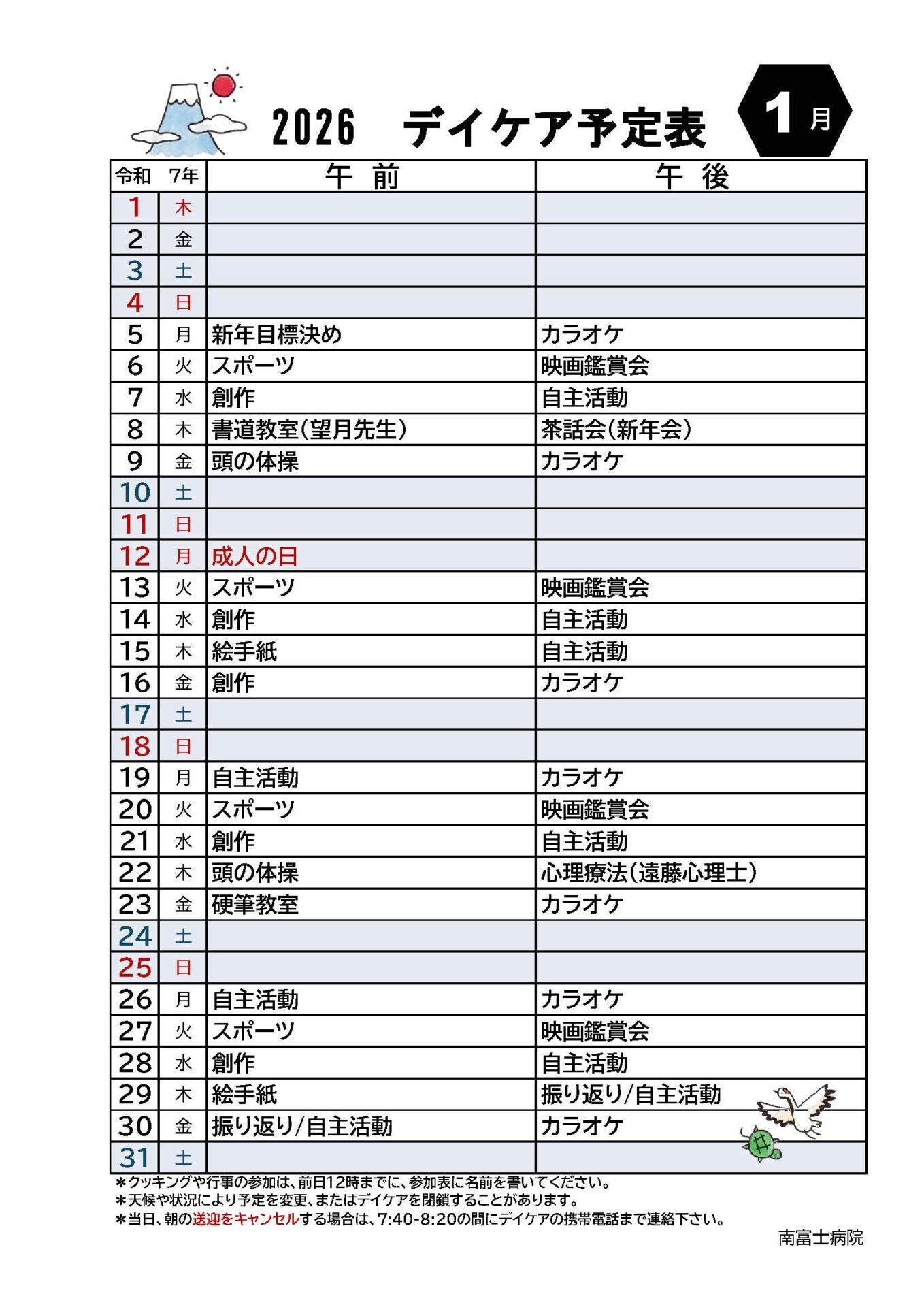 静岡県富士宮市の南富士病院は、「患者さん中心」の寄り添ったケアを行い、一日も早い社会復帰を願っております。