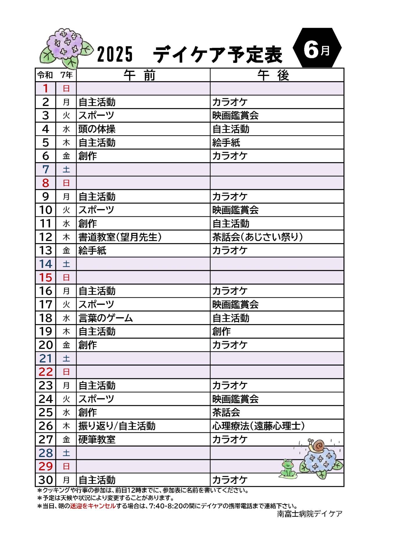 2025年6月のデイケアプログラムを更新しました